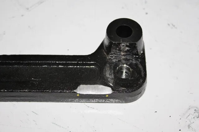 定規を当てている部分に段差が無くなる程度にオフセットブラケットを研磨する